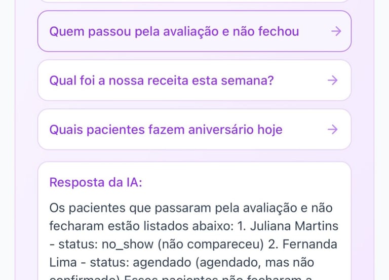 Muitos pacientes orçam e não fecham. A nossa IA detecta automaticamente essas oportunidades perdidas e te mostra quem priorizar para recuperar o faturamento.